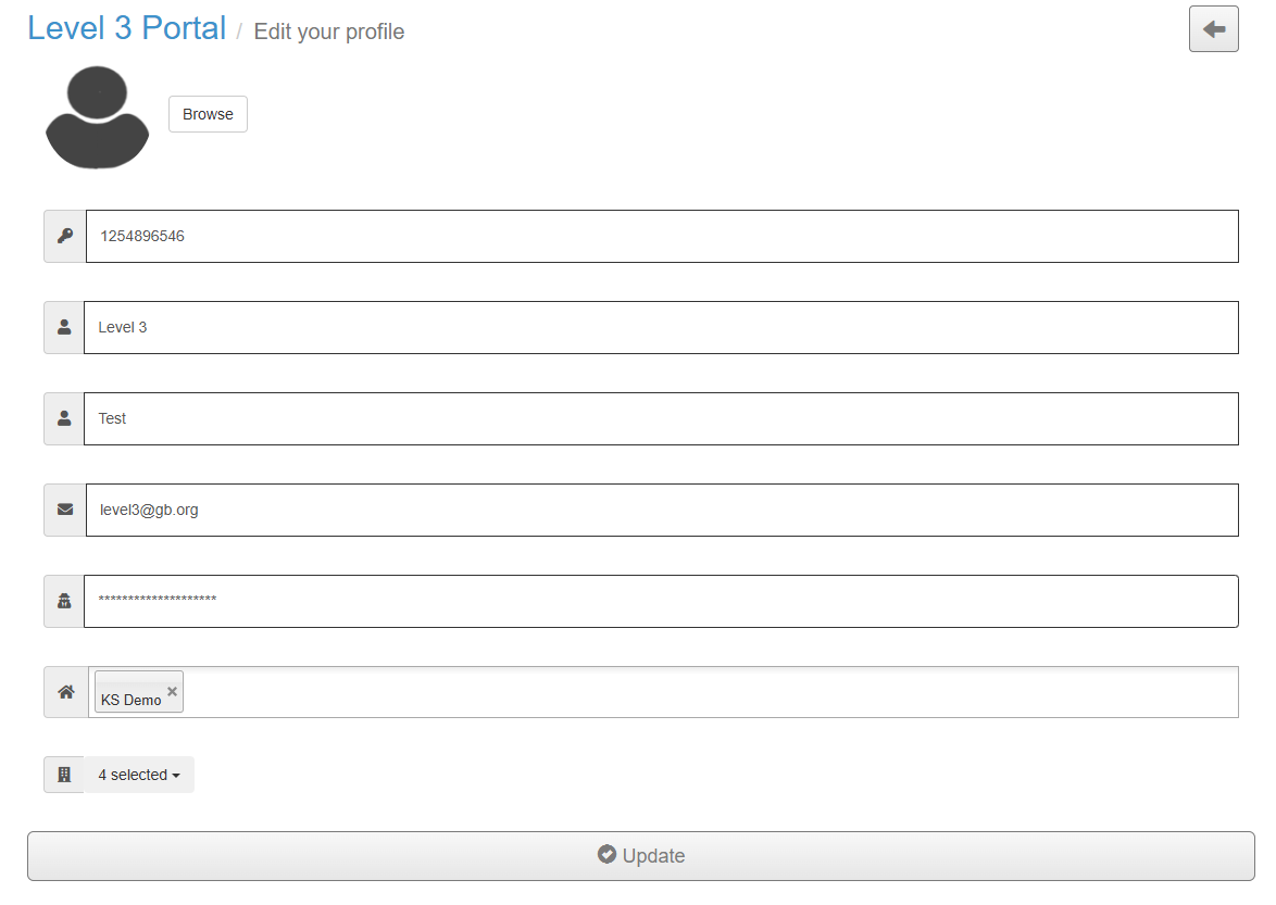 Step 2: This screen will allow you to add a picture and change your password. If you do not see the district and or buildings you should be connected to, contact your district Level 4 user.